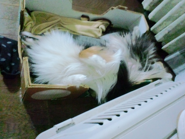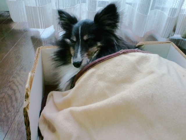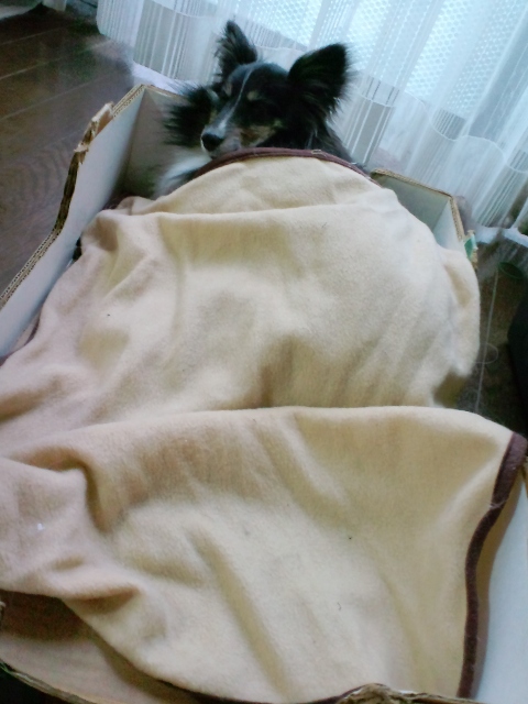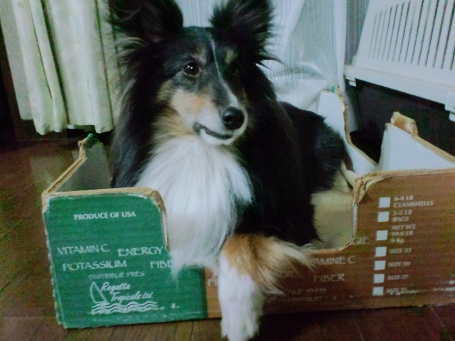 ハウスには入らず、別宅(コストコで貰った段ボール
