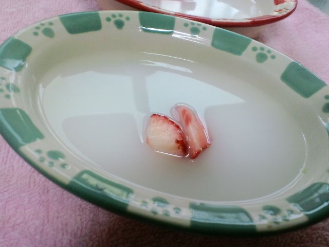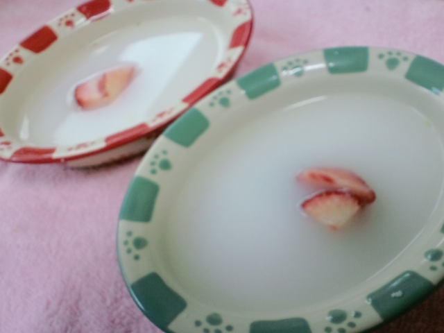 (メルがあまり水分を取らないので、少しだけ牛乳を入れた水をあげてます。)