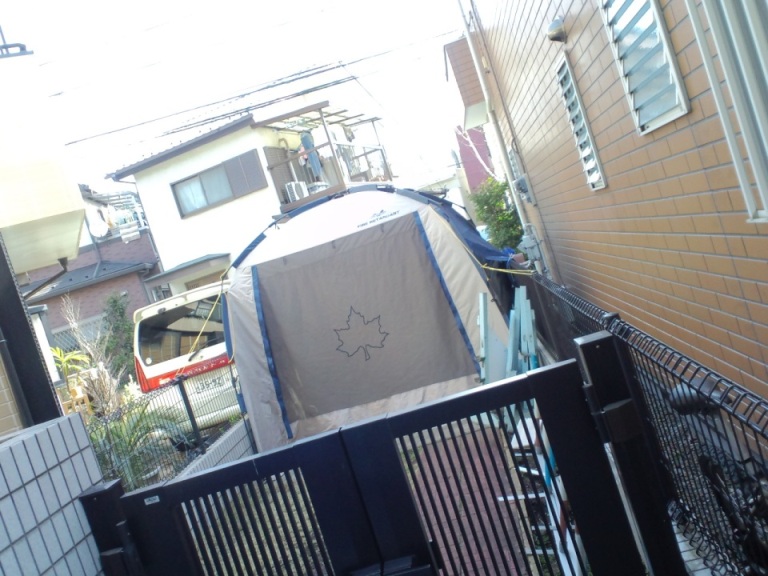 今回は、我が家の通路にテーブル(大人用)とシート(子供用)を出して