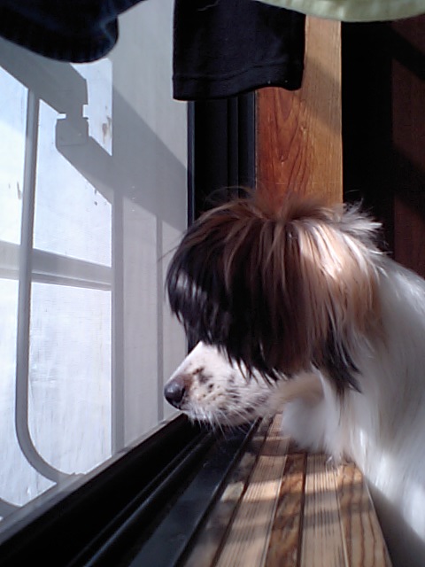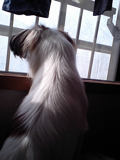 2階の窓から隣の保育園をを見るのが好きなここあくん。