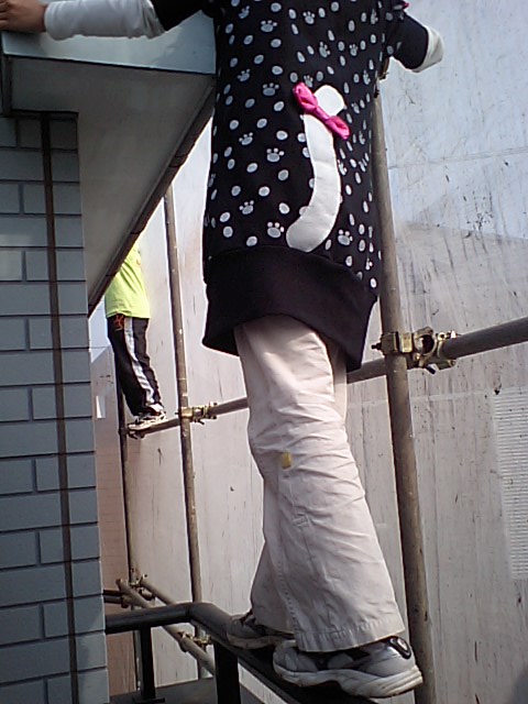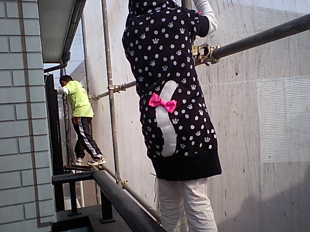 今日は作業が休みなので、娘②とパパと足場に上ってみちゃいました