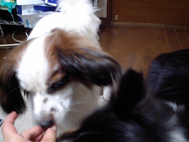 ・左手にご褒美のおやついっぱい