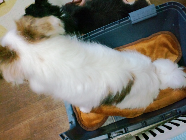 パチリ。ドライヤーの途中で脱走したから