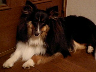 いつもはくるるんとなっている尻尾は下を向いていました。