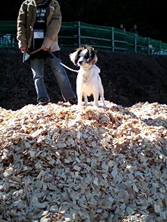 ウッドチップの山登りに挑戦したここあ。